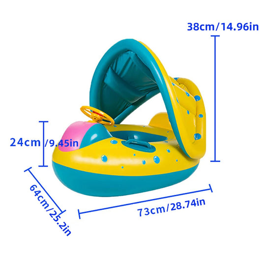 Oppusteligt babysæde med solskærm til poolsjov